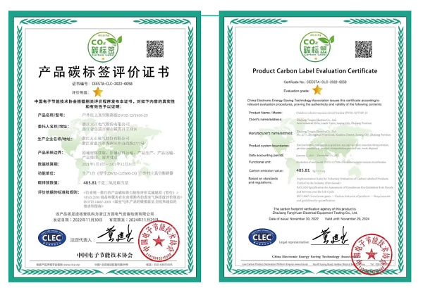 此次碳标签评价表明,爱游戏平台电气生产的户外柱上真空断路产品,在碳排放大数据方面按国际通行惯例推进,并具备一定的优势,对促进产品全供应链的温室气体减排,达成“双碳”目标具有积极作用。此外,爱游戏平台还获中国电子节能技术协会颁发的低碳产品供应商证书。